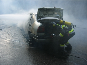 Flüssiggasbetriebenes Fahrzeug in Vollbrand