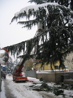 Bei den meisten Einsätzen handelt es sich um Äste die unter der Last des Schnees brechen, dabei werden mehrere geparkte PKW’s beschädigt.