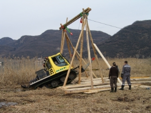 BF BZ - VVF BZAm heutigen Nachmittag wurde im Schilfgürtel des Kalterer Sees die gestern teilweise versunkene Schilfmähmaschine geborgen. In Zusammenarbeit mit den Freiwilligen Feuerwehren von St. Josef am See und Mitterdorf sowie Mitarbeiter des Amtes für Landschaftsökologie, der Gemeinde Kaltern und der Firma NUP aus der Schweiz (mit den Mäharbeiten beauftragte Firma) ist es dieser Berufsfeuerwehr gelungen die Bergung des bei den Mäharbeiten am gestrigen Dienstag teilweise im Wasser eingebrochene Mähmaschine sicher zu bergen. Für die Bergung musste ein eigenes Gerüst vor Ort aufgebaut werden.