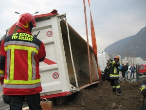 Der Fahrer konnte sich selber aus der Fahrerkabine befreien, und war nur leicht verletzt. So bestand für die Feuerwehr die Aufgabe das Erdmaterial auszuräumen und das Fahrzeug wieder auf die Räder zu stellen. Der Verkehr wurde während des Einsatzes von der Stadtpolizei geregelt.