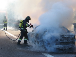 Da der Verkehr in beide Fahrtrichtungen zum Stehen gekommen war, war es für die Berufsfeuerwehr schwierig, den Einsatzort zu erreichen. Als die Berufsfeuerwehr vor Ort einlangte, stand das Auto des Typs BMW 3 in Vollbrand. Glücklicherweise hatten die drei Insassinnen, drei ältere Damen aus München, richtig reagiert: Sie hatten bemerkt, dass am Auto etwas nicht in Ordnung war und hielten das Auto auf der Notspur an. Dort zogen sie sich vorschriftsgemäß die Warnwesten an und brachten alles Gepäck, das sich im Kofferraum befunden hatte, in Sicherheit. Die drei Damen waren unterwegs in den Urlaub am Gardasee.