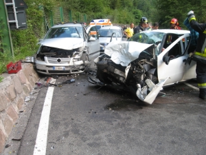 Heute Donnerstag, den 14.08.2008 um 17.30 Uhr ca. wurde diese Berufsfeuerwehr zu einem Verkehrsunfall auf die Eggentalerstrasse bei Km 4 in der Nähe des Gasthauses Wasserfall gerufen. Es war dort zu einem Frontalzusammenstoß zwischen zwei PKW's gekommen, ein dritter Pkw fuhr ebenfalls auf die beiden Fahrzeuge auf. Bei dem heftigen Zusammenstoß wurde ein Fahrer eines PKW's tödlich verletzt, ein zweiter Fahrer wurde schwer verletzt, zwei Insassen trugen mittelschwere Verletzungen davon, weitere 2 Passagiere wurde leicht verletzt. Die Passagiere wurden von der Feuerwehr aus den Fahrzeugen befreit und dann von den Notärzten der Landesnotrufzentrale erstversorgt und vom Hubschrauber und mehreren Rettungsfahrzeugen in das Bozner Krankenhaus eingeliefert.
