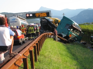 Heute 26/08/08 um 18:10 Uhr ist die Berufsfeuerwehr Bozen, zu einem Verkehrsunfall, auf die Südspur der A22 bei Km 119 gerufen worden.