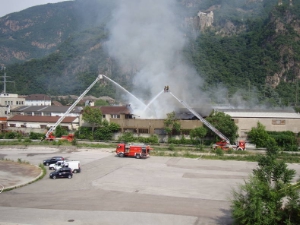 Gegen 15.15 Uhr ist die Berufsfeuerwehr Bozen zusammen mit den Freiwilligen Feuerwehren von Bozen, Gries und Oberau/Haslach zu einem Brand einer Industriehalle in der Bozner Voltastrasse alarmiert worden. Beim Eintreffen der ersten Kräfte stand das Obergeschoss der Halle bereits in Vollbrand und das Blechdach war bereits teilweise eingestürzt. Im Innern befanden sich eine große Anzahl an Textilien. Nach einem massiven Löscheinsatz über zwei Drehleitern von Außen und mehreren Atemschutztrupps von Innen konnte vom Einsatzleiter Walter Depaoli gegen 17.00 Uhr "Brand unter Kontrolle" gemeldet werden. Die Nachlöscharbeiten zogen sich bis um ca. 24.00 Uhr hin. Erst ab Mitternacht konnten die meisten Einsatzkräfte abgezogen werden und es bleiben 4 Mann zur Brandwache über Nacht vor Ort.
