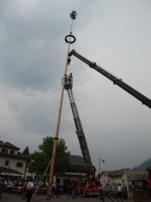 Am Samstag, 01. Mai 2010 gegen 13.00 Uhr ist diese Berufsfeuerwehr Bozen zu einem nicht alltäglichen Einsatz gerufen worden: ein ca. 30m hoher Maibaum drohte umzustürzen.