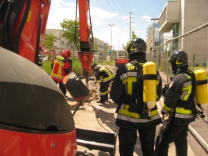 Die Berufsfeuerwehr Bozen wurde heute 20. Mai gegen 12:10 zu einem Gasaustritt in die Buozzistraße gerufen. Aufgrund Grabungsarbeiten mittels Erdbewegungsmaschine zur Verlegung von Glasfaserkabeln wurde eine 250mm Niederdruckleitung an zwei Stellen beschädigt. Daraufhin kam es zu einem unkontrollierten Gasaustritt.