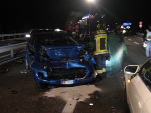 Auf der Nordspur der MEBO bei der Ausfahrt Eppan prallte am Samstag, den 19. 02.2011 abends gegen 19.00 Uhr ein Mann in einem Kleinwagen frontal mit einem anderen PKW, in dem zwei Personen saßen, zusammen.