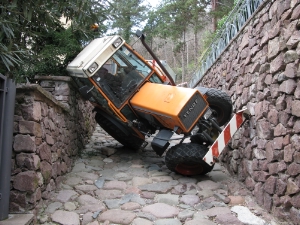 Um 15:27 Uhr des 28. März 2011 rückte eine Mannschaft der Berufsfeuerwehr Bozen für die Bergung eines Traktors aus, der sich in einer misslichen Lage befand. Der Traktor der städtischen Gärtnerei, der einen leeren Anhänger zog, war bei Ankunft der Mannschaft der Berufsfeuerwehr Bozen, seitlich gekippt und zwischen den Grenzmauern des steilen Steinweges verkeilt. Der Fahrer wurde unter Schock aber unverletzt ins Bozner Krankenhaus eingeliefert.