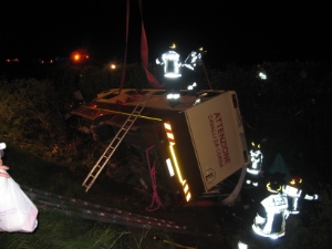 Zu einem ungewöhnlichen Einsatz wurde heute Abend gegen 21.30 Uhr die Berufsfeuerwehr Bozen gerufen. Ein Tiertransporter aus Mailland, der von Meran kommend Richtung Süden unterwegs war, kam auf km 113 der Brennerautobahn über die Fahrbahn hinaus und blieb seitlich im Straßengraben liegen. Der Fahrer und die Beifahrer konnten sich leicht verletzt selbst befreien, die 5 Rennpferde wurden zum teil im Fahrzeug eingeklemmt und konnten den Transporter nicht verlassen. Sofort wurden zusätzlich zu Feuerwehr, Polizei und Rettungsdienst auch Tierärzte von Bozen und Trient nachalarmiert, die sich sofort um die Tiere kümmerten. Primär galt es das Fahrzeug zu sichern und die Pferde zu befreien. 3 Pferde konnten gerettet werden, 2 Pferde konnten nur mehr tot geborgen werden. Die Autobahn wurde kurzzeitig gesperrt, war aber größtenteils einspurig befahrbar. Im Einsatz waren die Berufsfeuerwehr Bozen, die Freiwillige Feuerwehr Neumarkt, Tierärzte von Bozen und Trient, die Autobahnmeisterei, die Strassenpolizei und ein Rettungsfahrzeug aus Neumarkt.