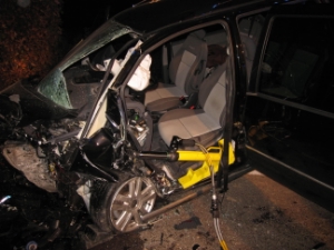 Am 27.11.2011 um 21:19 rückte die Berufsfeuerwehr Bozen zu einem schweren Verkehrsunfall in der Periferie von Bozen aus. Ein Audi A4 Sportback und ein VW Sharan fuhren in der Sigmundskroner Straße frontal zusammen, wobei der Lenker des VW's im stark beschädigten Fahrzeug eingeklemmt blieb.