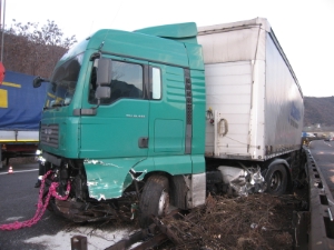 Ein aus Litauen stammender LKW Fahrer verlor die Herrschaft über seinen LKW und fuhr gegen die Leitplanken welche Nord- von Südspur trennen. Diese wurden auf einer Länge von ca. 100 m zerstört, dabei wurden die Treibstofftanks des LKW's aufgerissen. Die an der Unfallstelle eingetroffene Mannschaft der Feuerwehr versuchte sofort den ausgelaufenen Treibstoff zu binden bzw. den noch in den Tanks verbliebenen Treibstoff abzupumpen, der Großteil des Treibstoffs war zu diesem Zeitpunkt allerdings bereits ausgetreten.