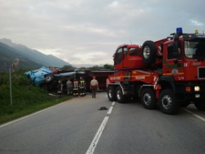 In den Morgenstunden ist auf der SS38 zwischen Vezzan und Schlanders ein italienischer LKW umgekippt und hat die Vinschgauer Staatsstrasse komplett versperrt.