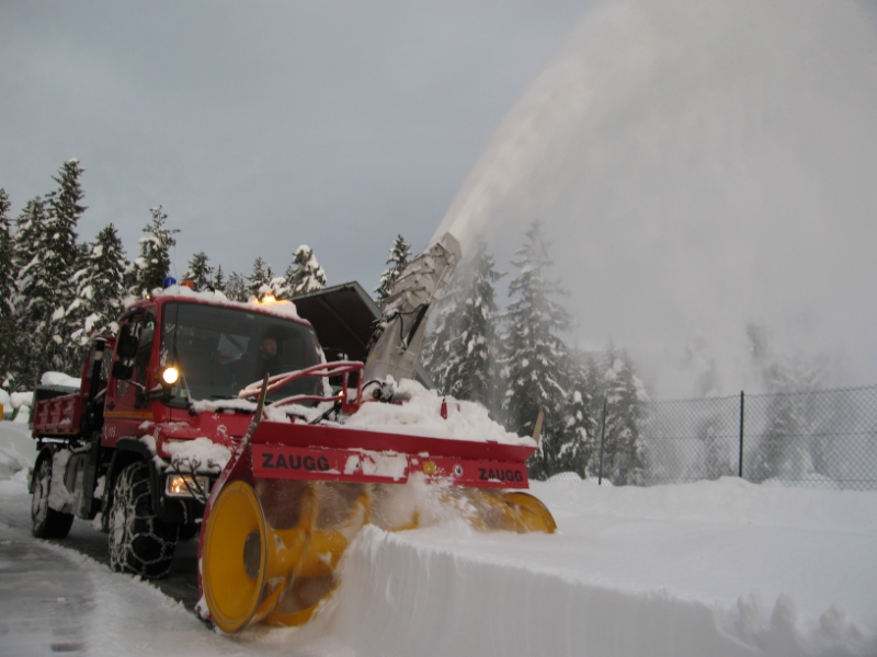 Seit gestern Abend ist eine Mannschaft der Berufsfeuerwehr Bozen in Sexten um die lokalen Kräfte beim Räumen der Gemeindestraßen mittels zwei Fräßen und einem Radlader zu unterstützen.