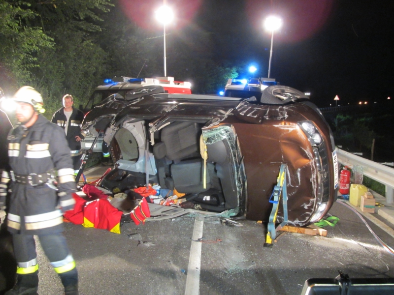 Fahrzeugenker bleibt nach Überschlag im Fahrzeug eingeklemmt.