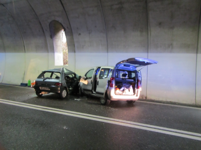 Bei einem Frontalzusammenprall zweier Fahrzeuge in einem Tunnel wird eine Person lebensgefährlich verletzt..