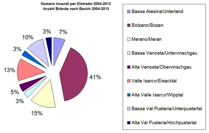 Der Landesverband der Freiwilligen Feuerwehren speichert seit dem Jahr 2004 die Einsätze in einer elektronischen Datenbank, ab 2005 sind alle Einsätze flächendeckend aktenkundig und so wurde diese Brandstatistik ermöglicht.Die Gesamtzahl der Brände ist langsam aber konstant gestiegen und zwar von rund 480 im Jahr 2005 bis um die 550 im Jahre 2013. In der Stadt Bozen (Summe der Angaben der Freiwilligen Feuerwehr und der Berufsfeuerwehr) ist die Anzahl leicht gesunken: von ungefähr 170 im Jahr 2005 bis um die 130 im Jahr 2013. Die meisten Fälle ereignen sich in Wohngebäuden (200 bis 250 im Jahr). Die Hotelbrände betragen maximal 50 im Jahr; anderen Tätigkeiten (Industrie, Schulen, Krankenhäuser usw.) weisen eine geringere Anzahl von Brandereignissen auf.Diese Ansicht ändert sich, werden die Brände prozentuell nach Nutzungsart betrachtet. Im Jahre 2013 waren 17 Prozent der Krankenhäuser und Altersheime (!) von einem Brand betroffen, während Schulbauten „nur" 3 Prozent und alle anderen Tätigkeiten weniger als 1 Prozent ausmachen. Interessant für die Freiwillige Feuerwehr ist sicherlich auch die Unterteilung in Bezirke und nach Gemeinden. Die Anzahl der Brände fällt naturgemäß in den größeren Ortschaften höher aus. Aus Datenschutzgründen konnte leider keine Schadensstatistik erstellt werden. Die Brandstatistik wurde vom Amt für Brandverhütung in Zusammenarbeit mit dem Landesverband der Freiwilligen Feuerwehren und der Berufsfeuerwehr erstellt und werden auf der Webseite www.provinz.bz.it/zivilschutz/brandschutz/brandverhuetung.asp online publiziert.