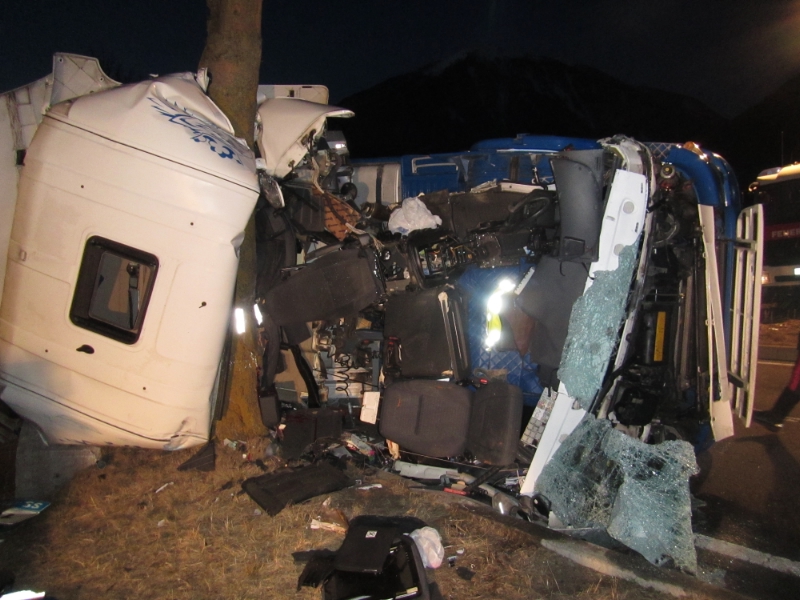 Gegen 05:00 ca. wurde diese Berufsfeuerwehr zu einem LKW Unfall nach Mals gerufen. Ein mit Kartonen beladener Sattelschlepper kippte aus ungeklärter Ursache um und rutschte seitlich gegen einen Baum. Dabei wurde der junge LKW-Fahrer tödlich verletzt. Zunächst wurde der Fahrer geborgen, anschliessend wurde der LKW samt Sattel auf die Räder gestellt und abgeschleppt.