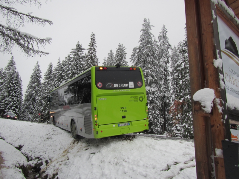 Heute gegen 14:30 Uhr kam ein Bus der SAD in der Zone des Karerpasses wegen eines Ausweichmanövers über die Fahrbahn hinaus. Aufgrund des Schneefalls drohte der Bus weiter abzurutschen.
