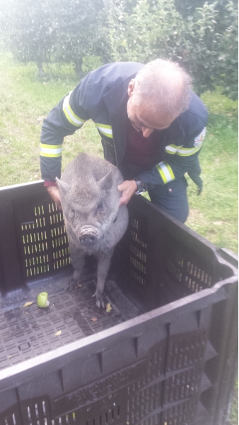 09.10.2015 - Feuerwehr fängt Schwein ein