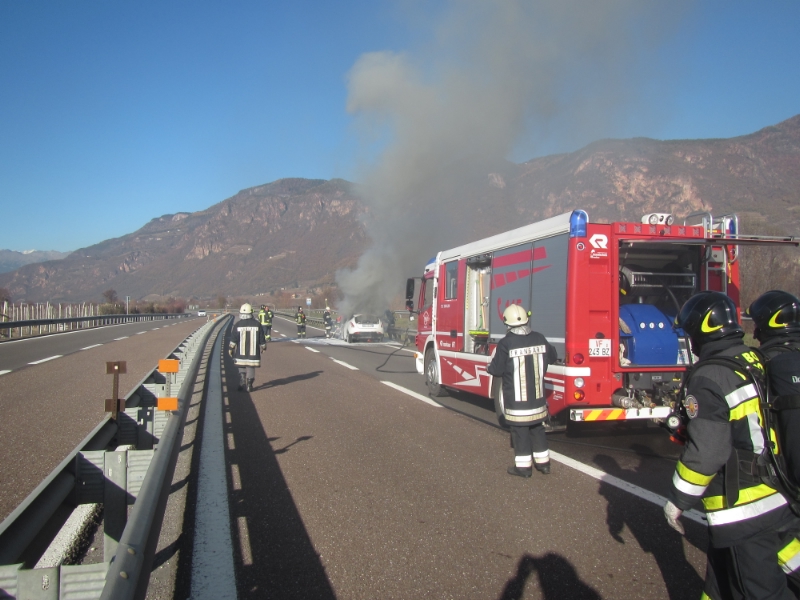 Heute, Mittwoch, den 2. Dezember um 12.45 Uhr wurde diese Berufsfeuerwehr zu einem Fahrzeugbrand auf die Schnellstrasse MEBO gerufen. Auf der Höhe der Eppaner Einfahrt der MEBO hatte auf der Nordspur ein PKW während der Fahrt Feuer gefangen. Die Insassen hielten das Fahrzeug an und konnte rechtzeitig das Fahrzeug verlassen. Die auch alarmierte Freiwillige Feuerwehr Frangart führte mittels Schaum die Löscharbeiten durch. Die Nordspur musste für längere Zeit komplett gesperrt werden, was natürlich zu ausgiebigen Staus führte. Um die Unfallstelle abzusichern war auch der Landesstraßendienst vor Ort, die Erhebungen der Ursachen übernahm eine Streife der Carabinieri von Bozen. Als Ursache nehmen wir einen technischen Defekt im Motorraum an.