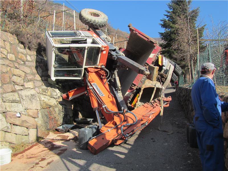 Gegen 10.00 Uhr ist oberhalb von St.Magdalena ein LKW samt 8t Bagger auf der äusserst steilen Strasse umgekippt, dabei wurde glücklicherweisse niemand verletzt, die Bergungsarbeiten gestalteten sich als sehr schwierig und dauerten bis in den Nachmittag. Im Einsatz stand neben dieser Berufsfeuerwehr die FF Bozen Stadt.
