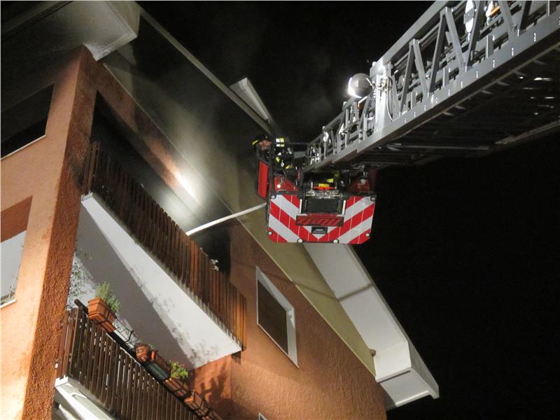 Heute Nacht um 4.16 Uhr wurde die Berufsfeuerwehr Bozen zu einem Brand in die Reschenstraße gerufen. Dort wurde ein Anwohner, welcher auf Grund der warmen Nacht auf dem Balkon schlief, auf einen Brand im darüberliegenden Stockwerk aufmerksam und setzte sofort den Notruf ab. Bei Ankunft der Mannschaften konnte der Brand im Bereich eines Balkons im 4. Obergeschoß festgestellt werden. Ein Trupp, welcher über das Stiegenhaus vorging, konnte den Bewohner ins Freie bringen. Er wurde vom Rettungsdienst zur Kontrolle ins Krankenhaus Bozen gebracht. Der Brand, welcher seinen Ursprung auf dem Balkon hatte, breitete sich bereits über die Balkontür in Richtung Wohnzimmer aus, er konnte jedoch mit Hilfe der Drehleiter von Außen innerhalb kurzer Zeit bekämpft werden.