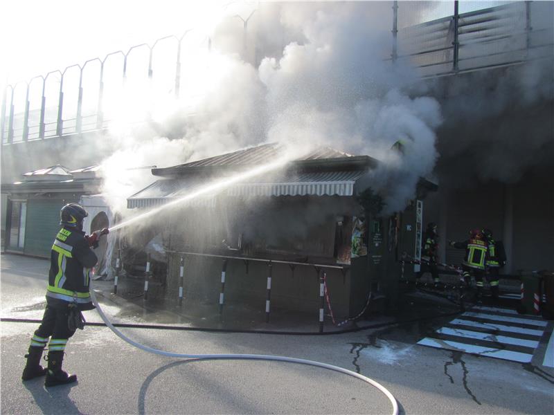 Gegen 10:00 Uhr des 03.11.16 wurde diese Berufsfeuerwehr zusammen mit der Freiwilligen Feuerwehr von Oberau/Haslach in die Buozzi Straße gerufen, nachdem wiederum bei einem Imbissstand in der Nähe der Zughaltestelle Bozen-Süd ein Feuer ausgebrochen war. Obwohl der Brand schnell unter Kontrolle gebracht werden konnte, verursachte er jedoch enorme, weithin sichtbare Rauchschwaden. Zeitweise musste darum sogar der Zugverkehr Bozen-Meran unterbrochen werden. Verletzt wurde niemand. Am Imbissstand selbst entstand weiterer schwerer Sachschaden. Im Einsatz standen neben dieser Berufsfeuerwehr, die Freiwillige Feuerwehr von Oberau / Haslach sowie eine Streife der Staatspolizei und der Stadtpolizei. Zur Klärung der Ursache des Brandes bedarf es weiterer Ermittlungsarbeit und man kann daher zum jetzigen Zeitpunkt noch keine klaren Aussagen darüber treffen.