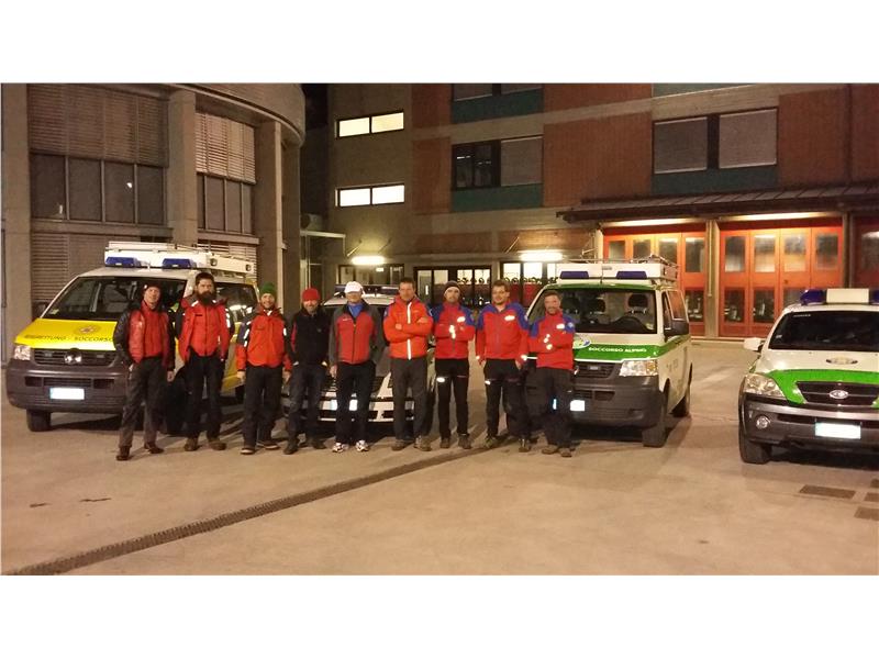 Bergrettungsdienst und CNSAS gemeinsam mit Bergrettern von Nord- und Osttirol mit Lawinendampfsonden ins Einsatzgebiet