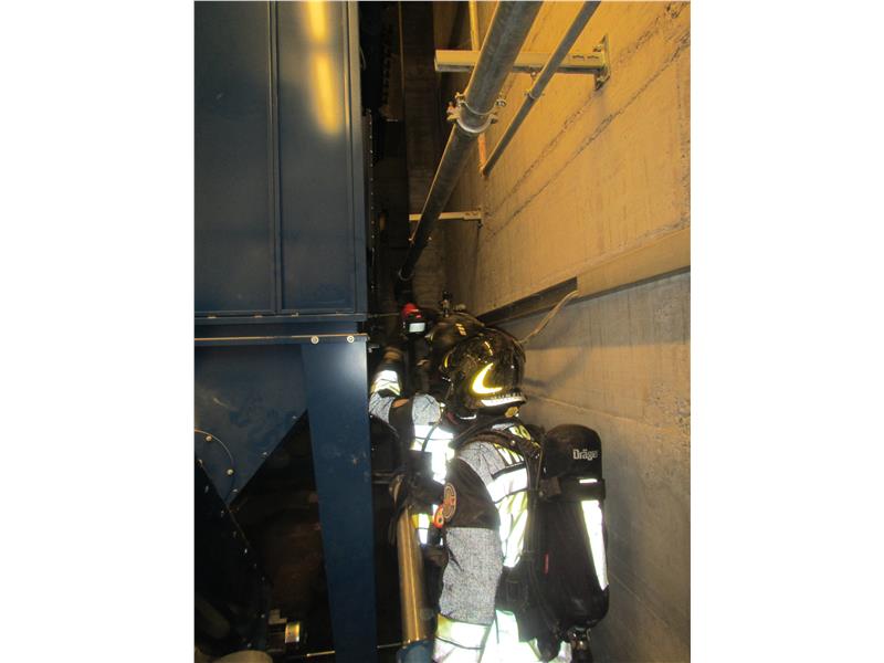 Starke Rauchentwicklung in einem Silo der internen Tischlerei.