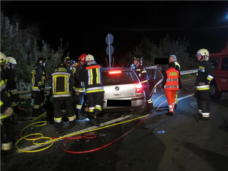 Gegen 23:00 Uhr des 24.09.2017 wurde diese Berufsfeuerwehr zusammen mit der Freiwilligen Feuerwehr von Frangart auf die MEBO Überführung der SS42 gerufen, nachdem zwei PKW's mit enormer Wucht zusammengestoßen waren. Dabei wurde die junge Fahrerin von einem der beiden Fahrzeuge schwer eingeklemmt und musste mit hydraulischem Rettungsgerät befreit werden. Während der Rettungsaktion blieb die Staatsstraße Richtung Eppan in beiden Richtungen für ca. eine halbe Stunde gesperrt. Im Einsatz standen weiters eine Notärztin des 118, sowie Rettungswagen des Weißen Kreuzes und Carabinieri.