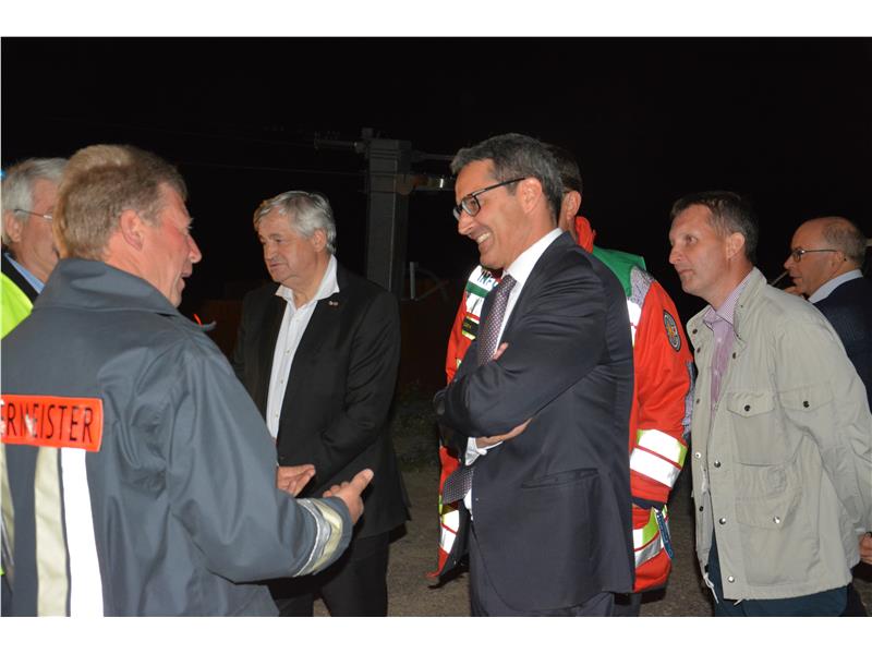 Landeshauptmann Arno Kompatscher, der für den Straßendienst zuständige Landesrat Florian Mussner, der Direktor der Agentur für Bevölkerungsschutz Rudolf Pollinger, Ressortdirektor Valentino Pagani und der Direktor der Abteilung Straßendienst Philipp Sicher, sowie Berufsfeuerwehrkommandant Florian Alber, verschiedene Funktionäre des Feuerwehrlandes- und Bezirksverbandes sowie Sarntals Bürgermeister Franz Locher, Bozens Stadtrat Luis Walcher haben an der großangelegten Übung als Beobachter teilgenommen.