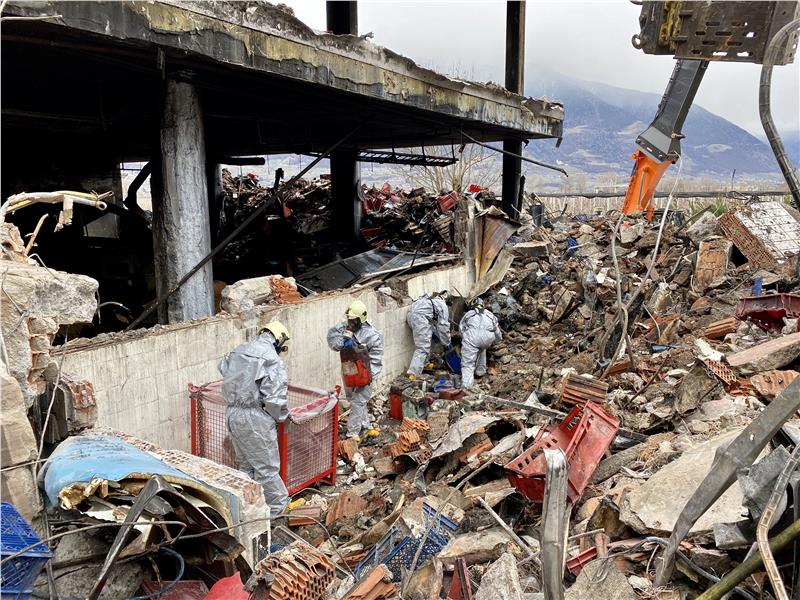Seit gestern Mittag laufen in Burgstall die erweiterten Aufräumarbeiten um die im Gebäude befindlichen Behälter mit Gefahrstoffen für Reinigungsarbeiten im Betrieb, durch technische Maßnahmen der Feuerwehr kontrolliert zu bergen. Mehrere im Betrieb vorhandene Ammoniaktanks wurden bereits erfolgreich umgepumpt und abtransportiert. Weiters wurden auch wieder vereinzelte Glutnester im Zuge der Aufräumarbeiten endgültig abgelöscht. Eine letzte Brandwache wird noch bis morgen von der Freiwilligen Feuerwehr Zenoberg abgehalten. Die weiteren Maßnahmen werden ab nun von Privatfirmen durchgeführt. Im Einsatz bei den Aufräumarbeiten standen seit gestern Mittag die Berufsfeuerwehr Bozen, die Freiwillige Feuerwehr Burgstall, die Freiwillige Feuerwehr Auer zur Unterstützung des Gefahrgutzuges der Berufsfeuerwehr Bozen sowie mehrere Privatfirmen.