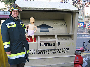 Foto BFBZEin Polizist alarmierte uns, da er leises Wimmern aus einem Altkleidercontainer hörte, er konnte nicht feststellen ob es sich um eine Kinderstimme oder das Klagen eines Tieres handelte.