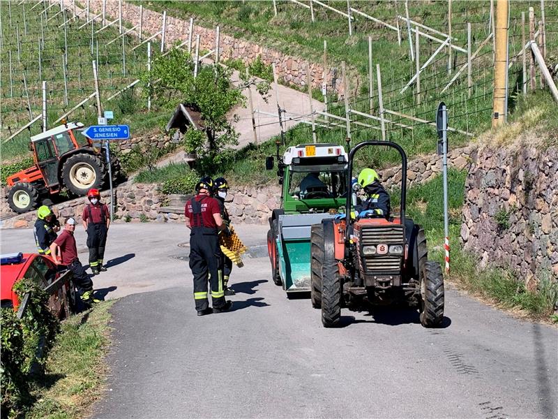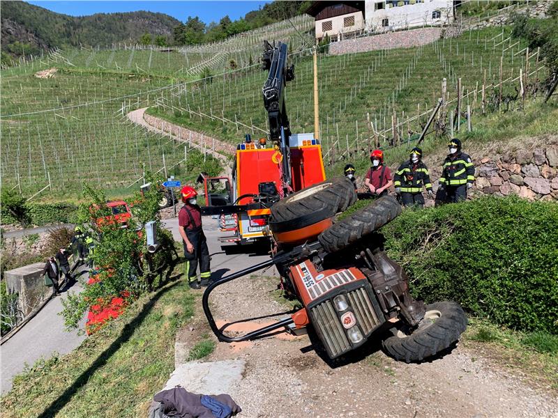 Beim Rangieren kommt ein Traktor über den Fahrbahnrand und kippt dabei auf die darunterliegende Straße. Der Lenker wurde verletzt und vom Notarzt erstversorgt und ins Krankenhaus von Bozen eingeliefert.