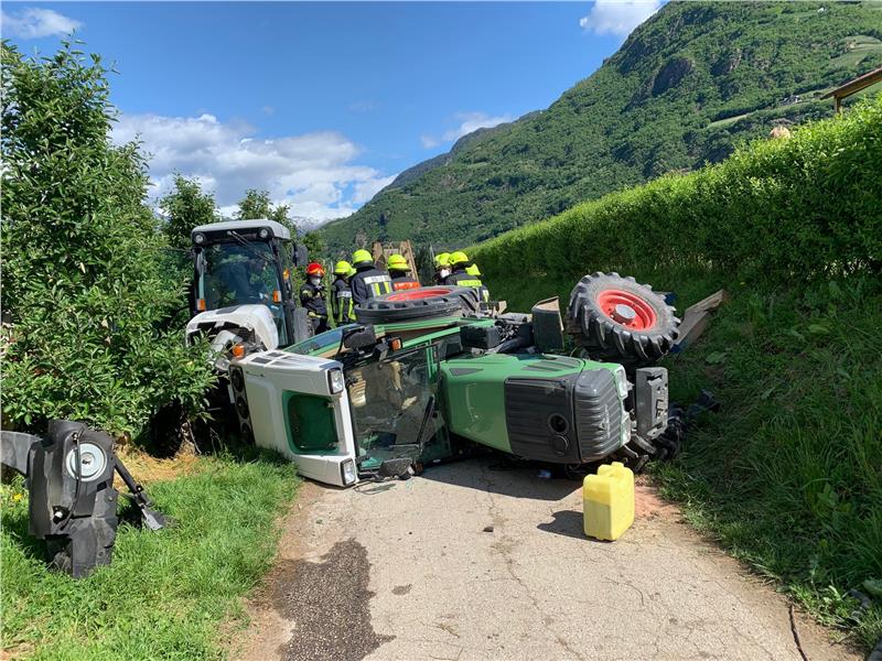 Heute Morgen rückte die Berufsfeuerwehr Bozen nach Terlan aus zur Unterstützung der Freiwilligen Feuerwehr bei der Bergung eines Traktors nach einem Unfall auf dem Lande. Zwei Traktoren kollidierten und einer kippte um. Es gab keine Verletzten.