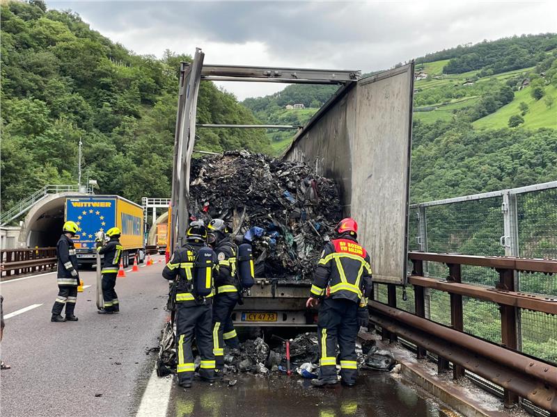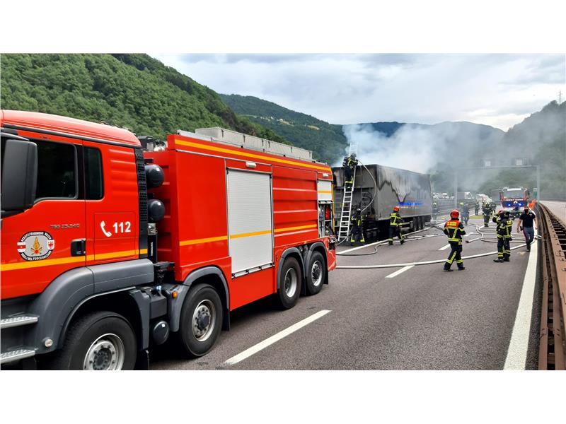 Am heutigen Nachmittag gegen 16:17 Uhr wurde die Berufsfeuerwehr Bozen zu einem LKW Brand auf der A22 gerufen.