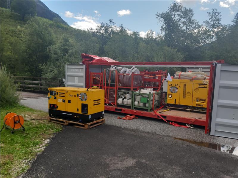 Weiters werden mit großen Tauchschlammpumpen Wasser und Schlamm aus tieferen Stockwerken gepumpt und mit großen Stromgeneratoren die notwendige Stromversorgung sicher gestellt. Der Einsatz wird sicherlich über Nacht und auch am morgigen Tag fortgeführt werden, gemeinsames Ziel ist es, die Infrastruktur des betroffenen Talaschnittes notdürftig wieder herzustellen und die Strasse ins hintere Pflerschertal wieder notdürftig zu öffnen, damit Bewohner und Gäste aus dem Tal fahren können und auch die Milchtransporte von den landwirtschaftlichen Betriebe ermöglicht wird.
