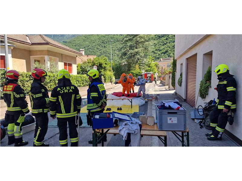 Die Berufsfeuerwehr Bozen rückte mit der Einsatzmannschaft gemeinsam mit der Ortsfeuerwehr und der Feuerwehr Auer aus. Vor Ort sicherte die Feuerwehr den Bereich ab. Eine erste Mannschaft mit Schutzanzügen und Atemschutz drang in den Raum vor und beseitigte rasch die Ursache des Austrittes. Anschließend belüftete die Feuerwehr die betroffenen Räume und sicherte das Gelände ab. Die Situation ist mittlerweile unter Kontrolle, jegliche ausgetretene Substanzen werden aufgefangen. Es gab keine Verletzte.