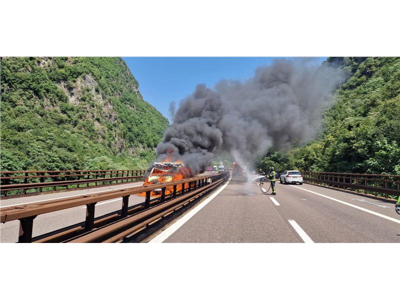 Um 12.58 Uhr ging bei der Berufsfeuerwehr Bozen die Alarmmeldung über einen Fahrzeugbrand auf der Südspur der A22 ein. Die Feuerwehr rückte umgehend mit einem Tanklöschfahrzeug und zwei Motorrädern aus. Während für die Berufsfeuerwehr auf der Nordspur nur auf dem letzten Kilometer ein Vorankommen erschwert war, hatte die Freiwillige Feuerwehr Klausen auf der Südspur über die gesamte Strecke hinweg mit schwierigen Verkehrsbedingungen zu kämpfen. Die Motorräder der Berufsfeuerwehr wurden gezielt eingesetzt, um die Notspur freizuhalten und eine zügige Anfahrt der Löschfahrzeuge sicherzustellen. In Zusammenarbeit mit der ebenfalls alarmierten Freiwilligen Feuerwehr Klausen, die über die südliche Fahrtrichtung anrückte, konnte der Brand unter Kontrolle gebracht werden.