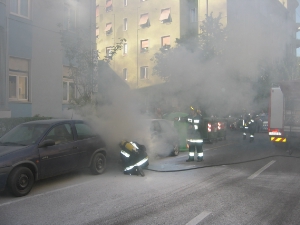 Foto BFBZ - VVFBZEine sehr einsatzintensive Zeit gab es für die Berufsfeuerwehr Bozen zwischen dem 8. und 9. Juni 2004. 56 Einsätze verschiedenster Art wurden von den Mannschaften der Berufsfeuerwehr Bozen in diesem kurzem Zeitraum abgearbeitet. Darunter waren zwei Fahrzeugbrände, ein Brand eines kleinen Festzeltes, ein Brand eines Ventilators von der Lüftung im Waltherhaus, mehrere Müllkübelbrände, ein Wasserrettungseinsatz in der Talfer, ein Verkehrsunfall auf der Autobahn, mehrere blockierte Aufzüge, verschiedenste Tierrettungen (Bienen, Vespen Taupen, Wellensittiche) usw...