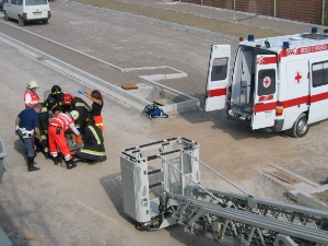 Foto BFBZ VVFBZDie Berufsfeuerwehr wurde am Nachmittag zu einem Arbeitsunfall in die Reschenstraße gerufen. Dort wurde ein Arbeiter nach einem Sturz an der Schulter von einem Betoneisen durchbohrt. Nachdem die Eisenstange stabilisiert wurde, konnte diese mit einem Bolzenschneider durchtrennt werden. Der Patient wurde daraufhin mit der Drehleiter vom 2. Obergeschoß der Baustelle auf die Zufahrtsstraße gebracht. Die Versorgung des Patienten übernahmen die Sanitäter der Berufsfeuerwehr gemeinsam mit dem Notarztteam.