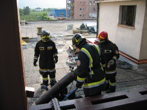 Foto VVFBZ - BFBZUm ca. 17:00 Uhr wurde die Berufsfeuerwehr Bozen wegen eines Acetylengasflaschenbrandes im Krankenhaus von Bozen allarmiert. Diese befand sich im Baustellenbereich (Anpassung der Struktur an die Sicherheitsrichtlinien), auf dem Dach oberhalb der Krankenhausküche. Aus Sicherheitsgründen wurden die im unmittelbaren Gefahrenbereich liegenden Abteilungen evakuiert. Die Mannschaften der Berufsfeuerwehr wurden dabei von den Freiwilligen Feuerwehren von Bozen, Polizei, Carabinieri und Stadtpolizei unterstützt. Parallel zur Evakuierung wurde die Gasflasche mit Wasser gekühlt, da der Innhalt der Flaschen bereits bei geringer Aufheizung gefährlich reagieren und es zu einer Explosion kommen kann. Die Temperaturänderungen wurden konstant mit Hilfe einer Wärmebildkamera überwacht. Nachdem die Gasflasche abgekühlt war und sich die Temperatur nicht mehr veränderte, konnte sie geborgen und an einen sicheren Ort gebracht werden. Dort wird die Gasflasche unter Aufsicht für weitere 24 Stunden gekühlt. (Notwendige Zeit um mit Sicherheit jegliche Gefahr auszuschließen.
