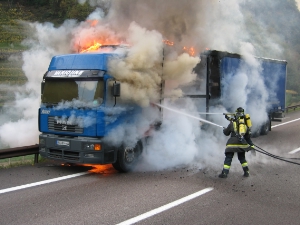 Foto BFBZ - VVFBZAm Vormittag des 18. November wurde die Berufsfeuerwehr wegen eines brennenden Lastwagens auf die Brennerautobahn gerufen. Der LKW hatte Teile eines Aufzugs und mehrere schwere Blechrollen geladen. Der Fahrer wurde vor der Autobahnausfahrt Bozen Nord von anderen LKW-Fahrern auf den Brand aufmerksam gemacht. Er steuerte das Fahrzeug in den momentan wegen Arbeiten stillgelegten Bereich der Autobahn und brachte sich in Sicherheit.