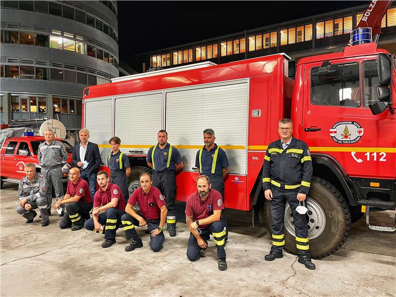 Vier Berufsfeuerwehrmänner und vier Freiwillige Feuerwehrmänner starteten mit einem Tanklöschfahrzeug der Berufsfeuerwehr mit 2500 Litern Wasser, das speziell für Waldbrand ausgerüstet ist, einem Pick-up mit Waldbrandeinheit mit Hochdruckpumpe und 500 Litern Wasser und Geländefahrzeugen heute um 22 Uhr vom Sitz der Agentur für Bevölkerungsschutz in Bozen Richtung Süden und werden von San Giovanni in Reggio Calabria auf einer Fähre nach Sizilien übersetzen. Ab Dienstag (3. August) werden die Feuerwehrleute aus Südtirol voraussichtlich eine Woche lang bei der Waldbrandbekämpfung mithelfen.