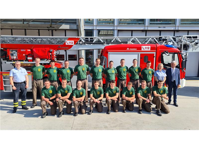 23 Männer haben ihre Ausbildung zum Berufsfeuerwehrmann abgeschlossen: Bevölkerungsschutzlandesrat Schuler und Kommandant Alber haben heute (20. Mai) dazu im Rahmen einer Feierstunde gratuliert.