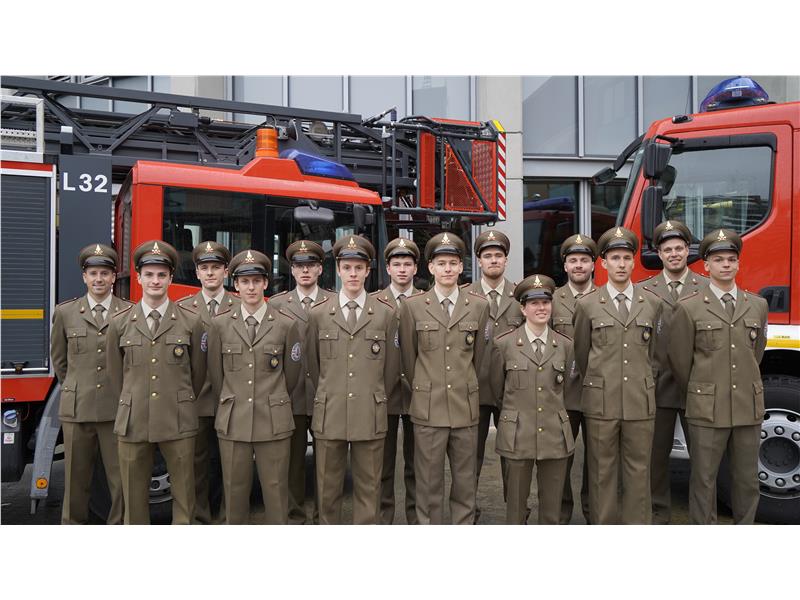 Nach einem neunmonatigen Ausbildungskurs haben die dreizehn Feuerwehrmänner und eine Feuerwehrfrau ihre Ausbildung beendet und gehen in den aktiven Dienst über.