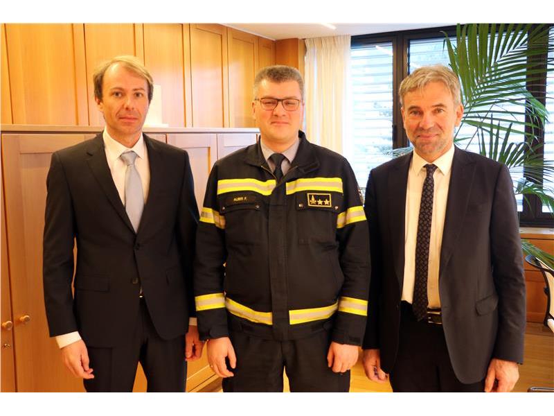 Zivilschutzlandesrat Schuler hat im Gespräch mit Kommandant-Stellvertreter Florian Alber die Weichen für die Zukunft der Berufsfeuerwehr gestellt.