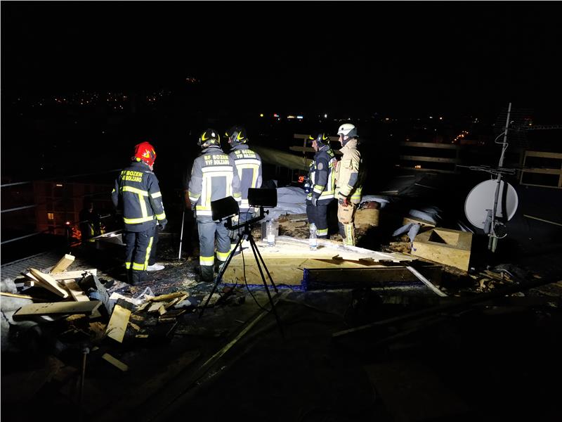 Intorno alle ore 20:40 del veneredì 18.10.2019 questo Corpo Permanente dei Vigili del Fuoco é intervenuto per un incendio di tetto in via Roen 57 a Bolzano. Il condominio di 8 piani aveva il tetto in fase di ristrutturazione. Le fiamme sono state domate in breve tempo. Per assicurarsi che non fossero presenti braci latenti si é reso necessario tagliare il tetto con delle motoseghe per circa 25 m².
