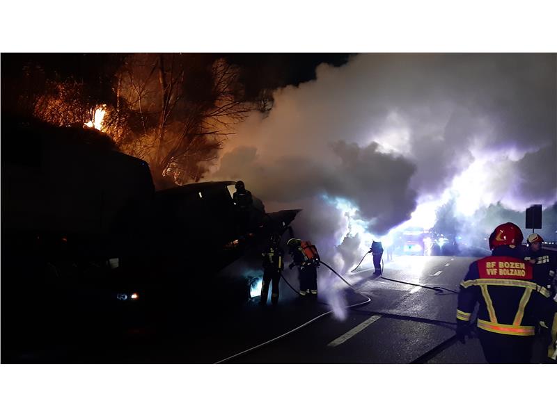 Alle ore 04:00 circa di oggi,sabato 29.02.2020 questo Corpo Permanente dei Vigili del fuoco e´statto allertato per un incendio di camion al km 60,8 della corsia nord dell’autostrada A22.