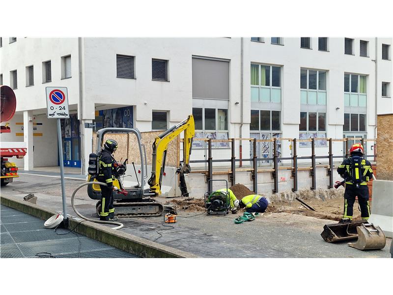 Poco prima di mezzogiorno il Corpo Permanente dei Vigili del Fuoco di Bolzano è stato contattato dai technici della SEAB Gas per interveniere in un cantiere in via Michael Gamper a Bolzano. Una condotta del Gas era stata danneggiata durante lavori di perforazione. Grandi quantità di gas metano sono fuoriuscite incontrollate perchè la la condotta non poteva essere chiusa.